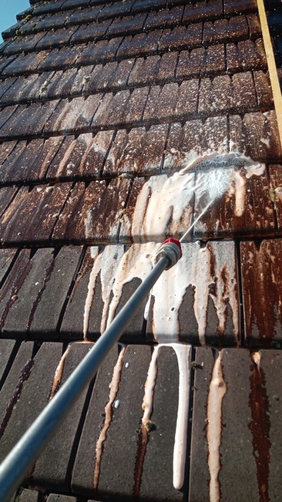 Après le nettoyage, un traitement anti-mousse a été pulvérisé sur l’ensemble de la toiture, permettant de détruire les végétaux incrustés en profondeur. Ensuite, un produit hydrofuge a été appliqué afin de protéger durablement la couverture contre les infiltrations d’eau et limiter la réapparition de mousses. Cette opération est essentielle pour préserver la longévité du toit à Mareil-sur-Mauldre 78124.